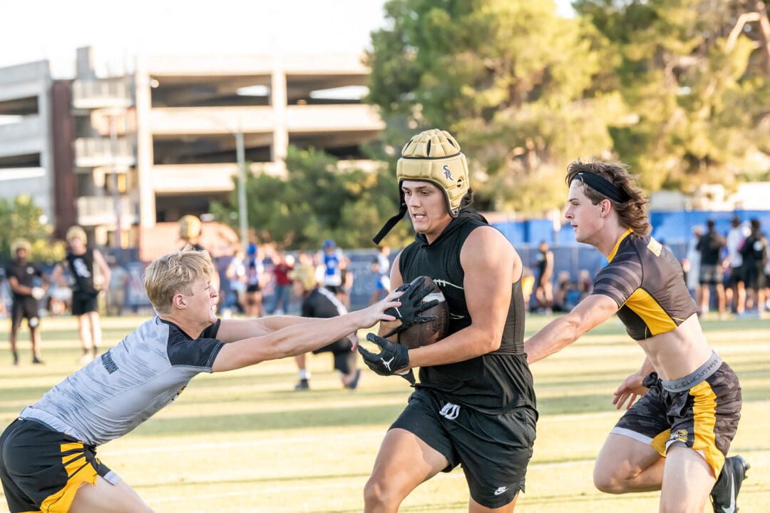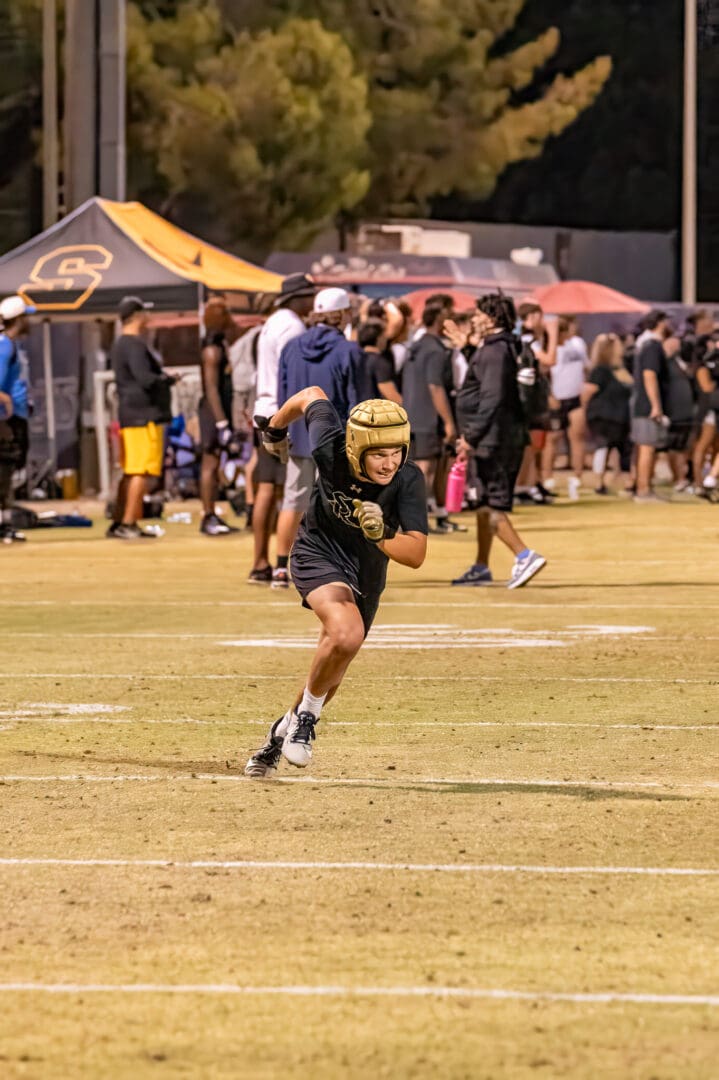 I spent the entire spring season with the Shadow Ridge High School football team attending 7x7s, which was so much fun for me. In all my years on the field, I had never even heard of a 7×7 tournament until we moved to Phoenix. Sevens tournaments are mini games where football skills players took to the various practice fields, competing with seven players on each side. It’s wildly different from traditional football, but just as much fun to watch.
