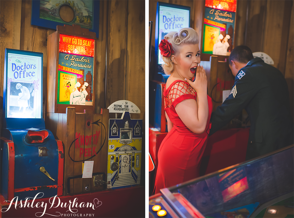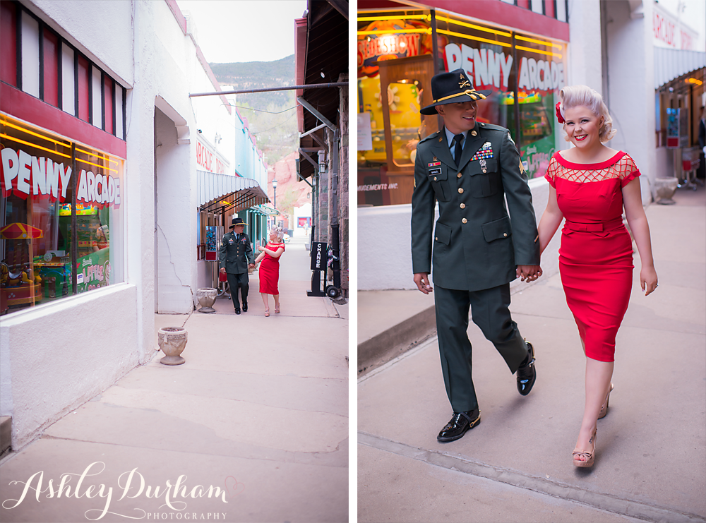 This shoot was phenomenal from start to finish. Sabrina and I have been putting it together for a few weeks now, because we wanted to do a just-for-fun, just-for-us shoot. I’ve been wanting to do a shoot a the Penny Arcade in downtown Manitou Springs for the longest time, and Sabrina had been just dying to do a pin-up shoot – and wah-lah! Laura and Victor are such a sweet and amazing couple – I did their family photos a couple of years ago when I first moved to Colorado Springs, and Sabrina is Laura’s hairstylist … so we knew they would be perfect models for this shoot!