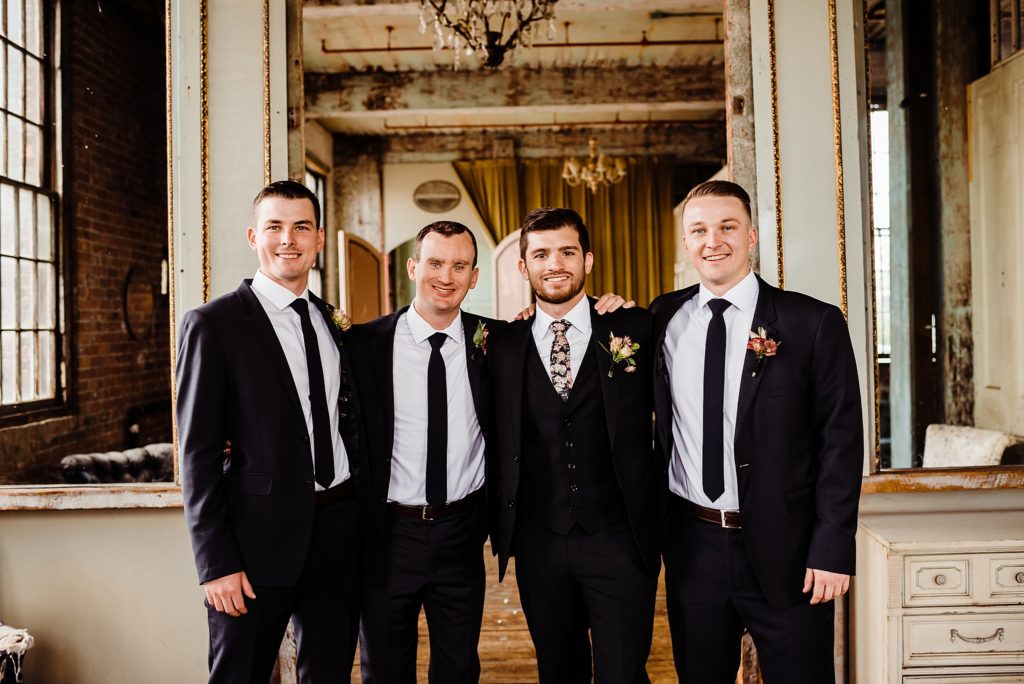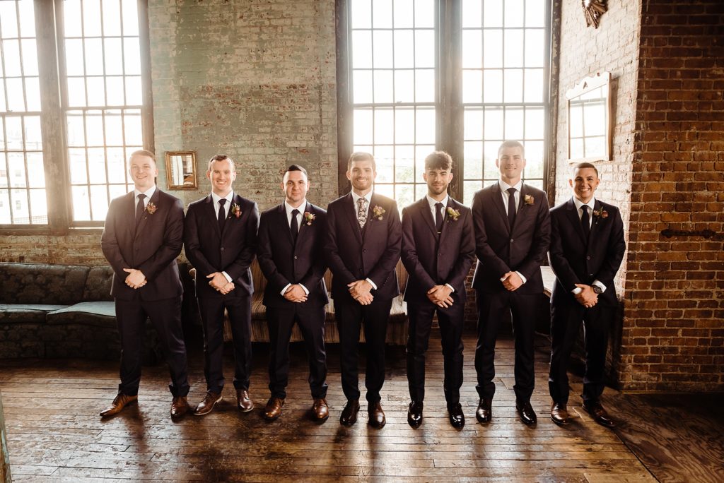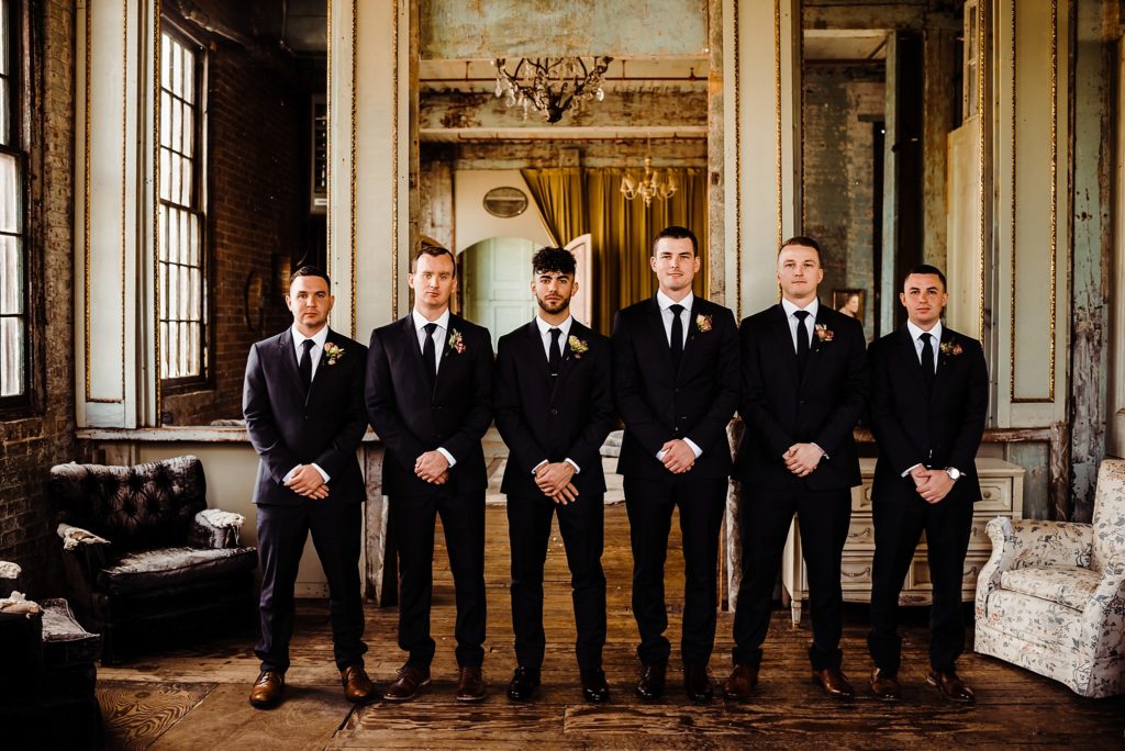 VENUE + CATERING Metropolitan Building | WEDDING PLANNER Dream Makers NY | DJ 74 Events | FLORIST Buds of Brooklyn | CAKE + DESSERT Doughnut Planet | HAIR The Makeup Studio | MAKEUP Makeup by Nikolette | INVITATIONS Minted | BRIDAL GOWN Blush by Hayley Paige | GROOM’S SUIT Indochino | GROOMSMEN ATTIRE Menguin | BRIDESMAIDS ATTIRE Davids Bridal + BHLDN | RINGS Ken & Dana Design