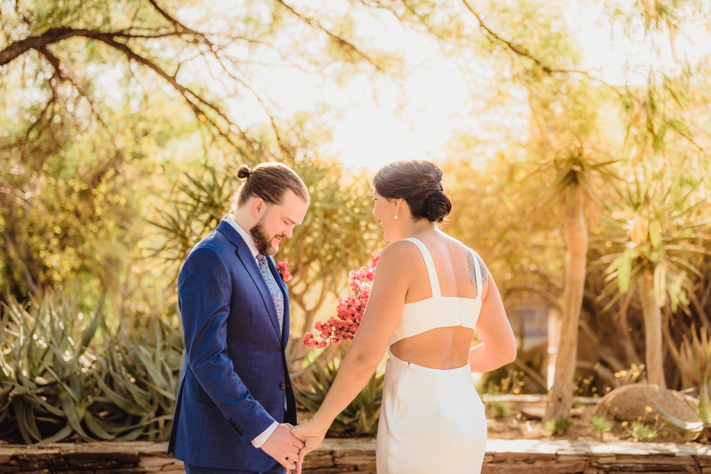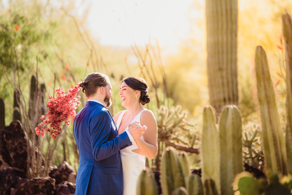 Watson and Lauren’s elopement at the Desert Botanical Garden in Phoenix was my first one there – and I am hooked! The Desert Botanical Garden is a b-e-a-uuutiful spot to elope in Phoenix, complete with all the cacti you can dream of, palo verdes, and in the springtime? Lots of blooming flowers! It looks so much different than it did in the fall, but it’s equally beautiful year-round.