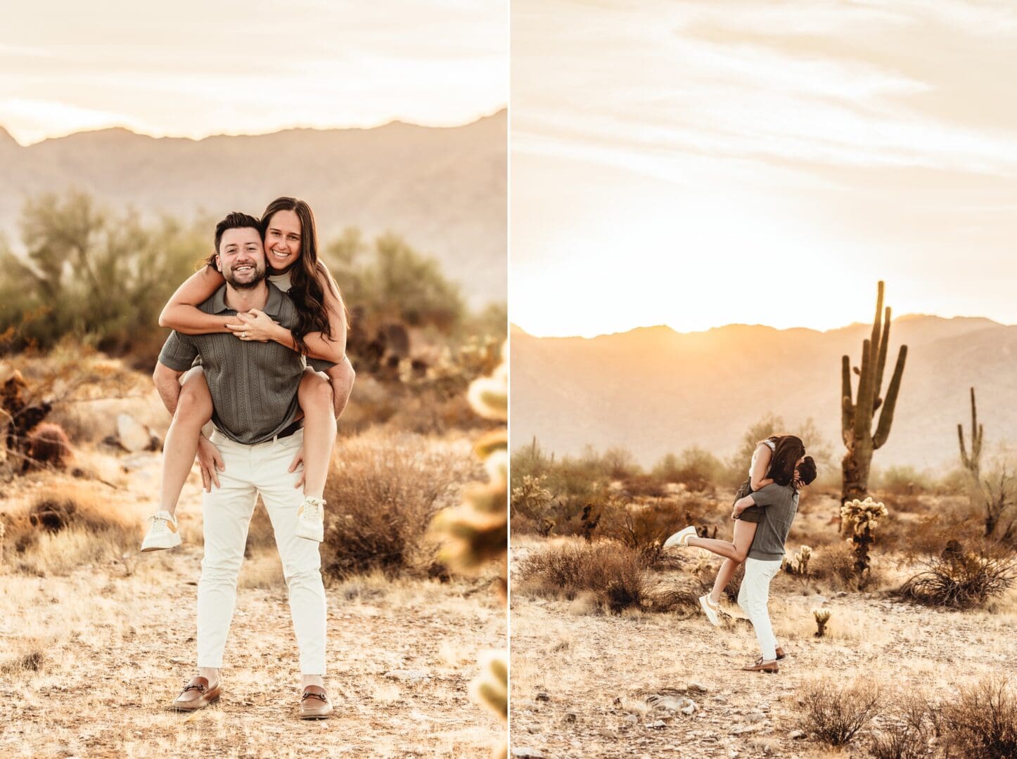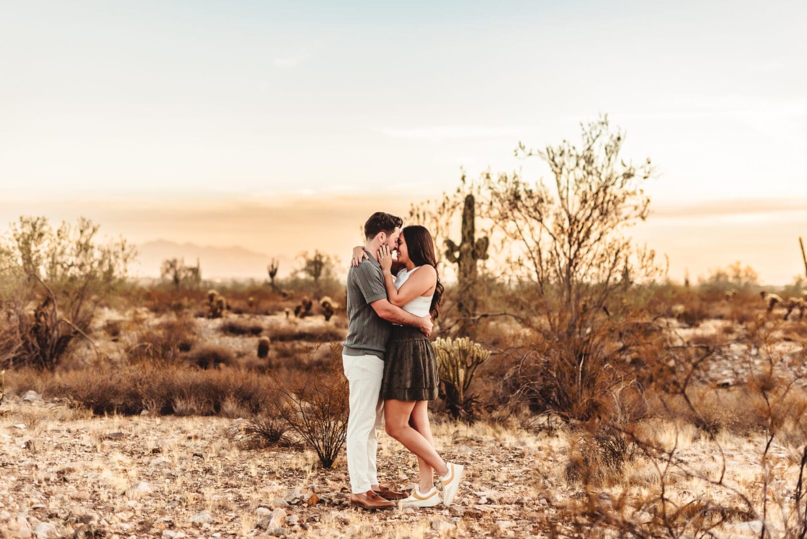 A few weeks before Lizzie and Joel came to Phoenix for a visit, Joel reached out to me about planning a surprise engagement session for his girlfriend. He had big plans to propose to her earlier in the week, and he thought it would be a great idea to surprise her with a photo session with me while they were here! The surprise proposal went off without a hitch, and I met with them a couple days later to take their engagement photos at White Tanks in Surprise.