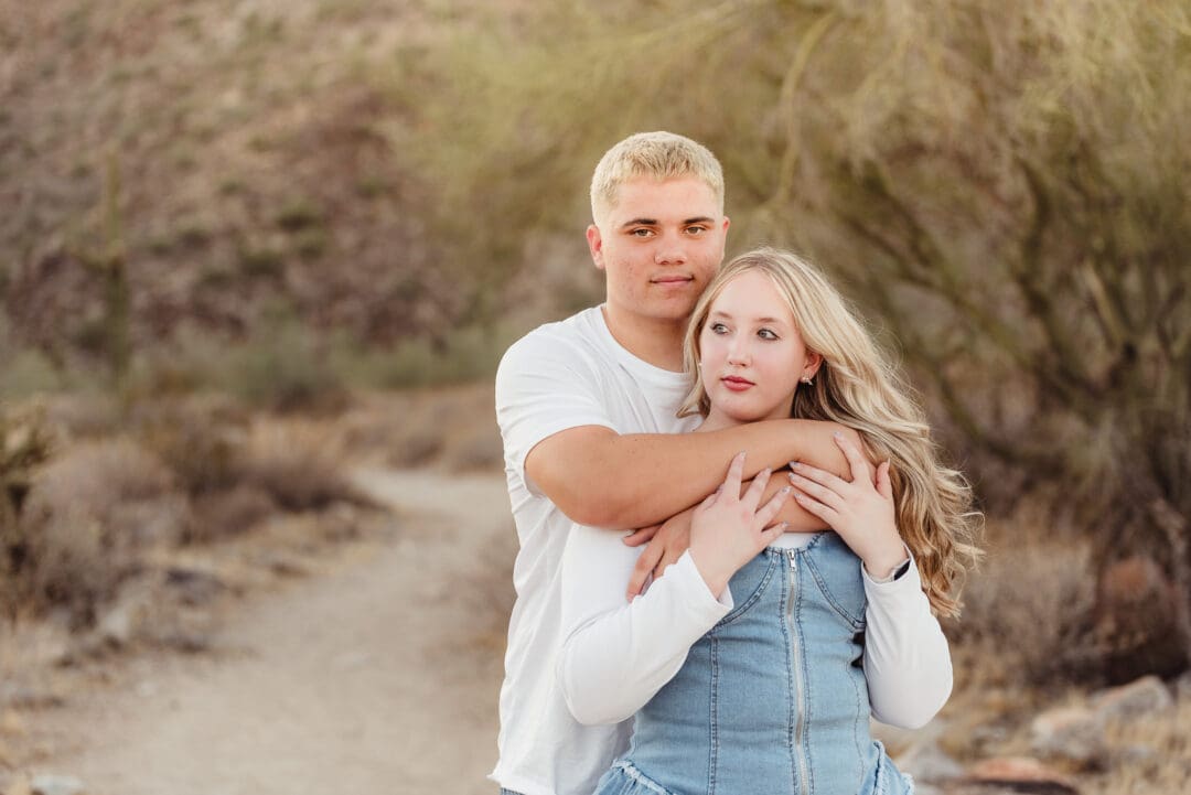 I photographed their high school sweetheart session at White Tanks Regional Park, which is one of my favorite photo locations near Surprise, Arizona. It’s actually one of the session locations available for families in the west valley of Phoenix!