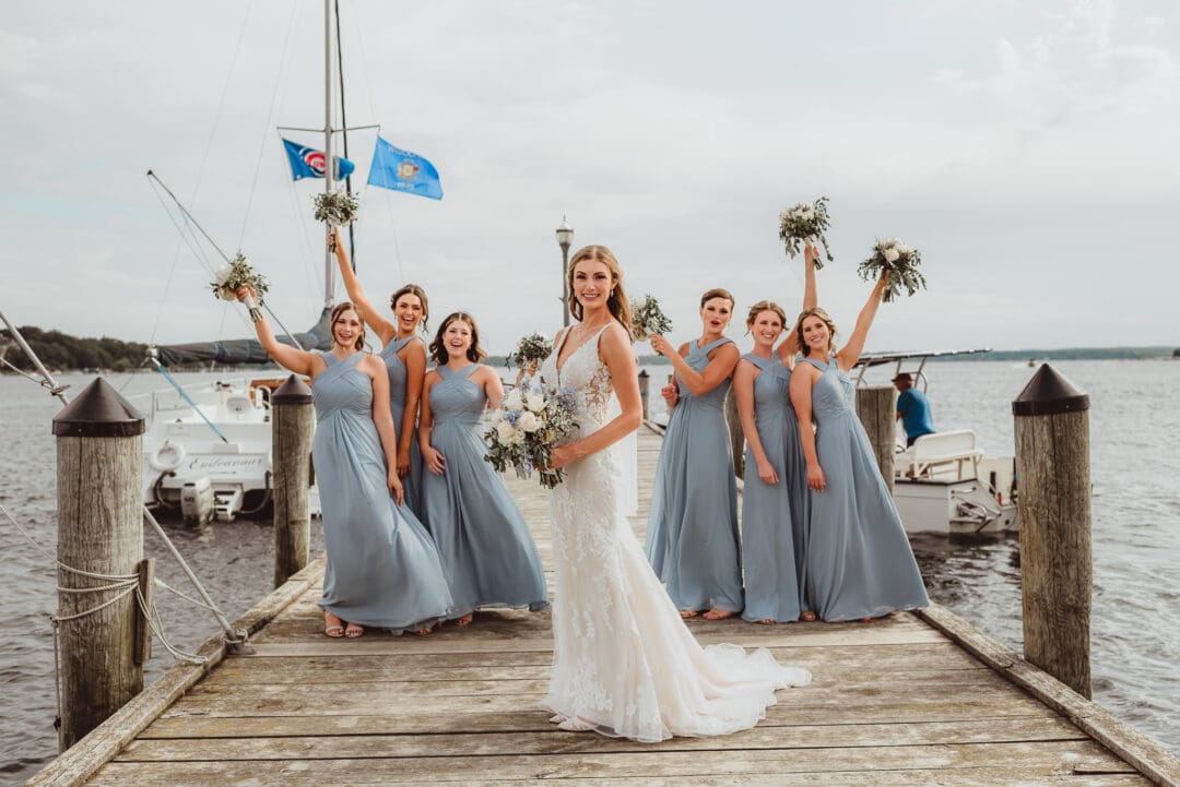 VENUE The Riviera Ballroom in Lake Geneva COORDINATION Four Daughters Weddings and Events DJ A Personal Touch DJ FLORAL Lockers Flowers CATERING & DESSERT Celebration on Wells HAIR & MAKEUP Beaute Luxe BRIDAL GOWN All About the Gown GROOM & GROOMSMEN ATTIRE Tuxology BRIDESMAIDS ATTIRE Azazie JEWELRY Brilliant Earth VIDEO Phillip Cano Films SIGNAGE Zazzle