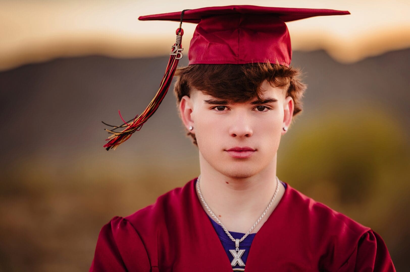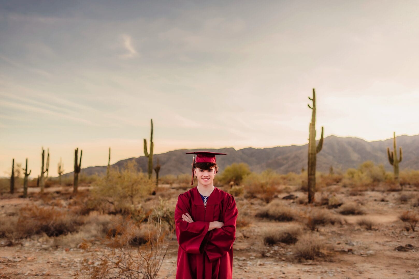 Meet one of my football buddies, Xander! Last year, I watched Xander play tailback on the Shadow Ridge High School football team at the varsity games – and let me tell you, he was one of my favorite players to watch! Super charismatic and talented while also humble and kind. His mom Kim has become one of my good friends here, and just hearing her talk about Xander’s upcoming college career, you can tell how proud their family is of Xander. I’m so excited to watch him take the next steps in football, choosing from one of the 10+ schools that have made offers for him to play. So glad he could come to one of my cap and gown mini sessions held earlier this month at White Tanks Regional Park here in Surprise.